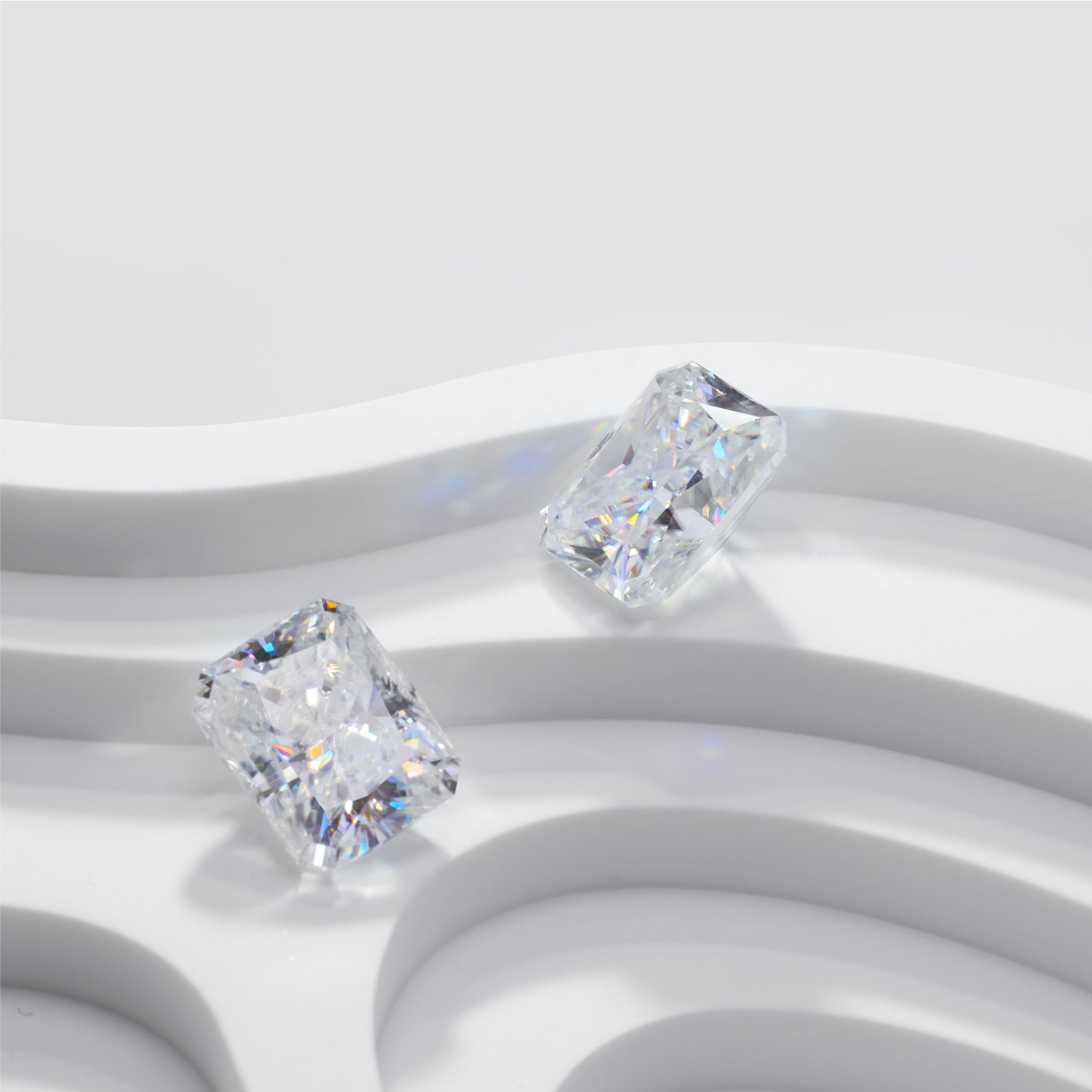 This loose Radiant Cut Certified Moissanite Solitaire is a brilliant choice for those seeking a stunning and ethically-sourced center stone. With its fire and brilliance that rivals that of a diamond, this certified gemstone offers a cost-effective and sustainable option for any engagement ring or fine jewelry piece. Add a touch of eco-friendly luxury to your collection.