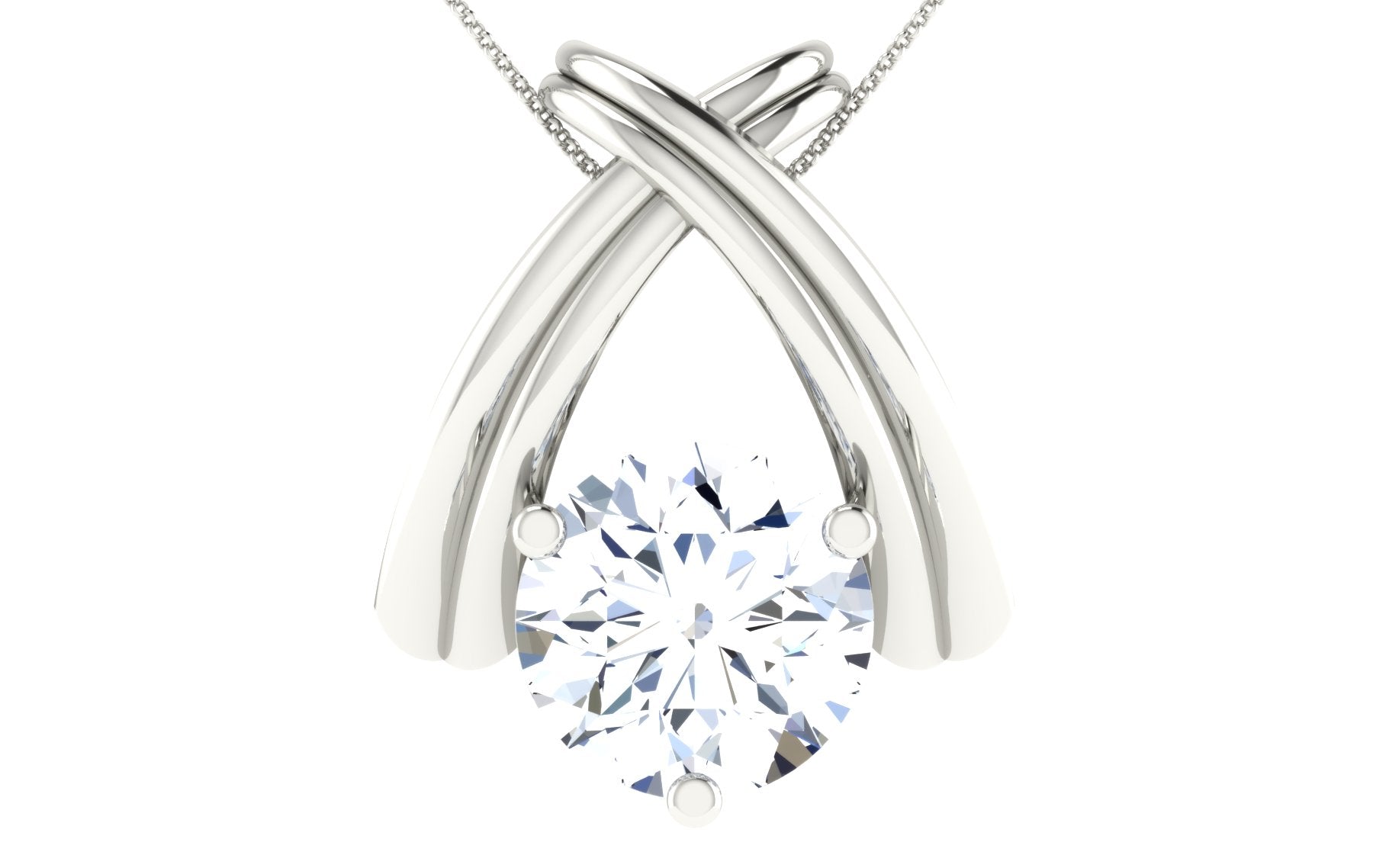 Radiant Round Cut Moissanite Pendant in Sterling Silver With Rhodium Plating