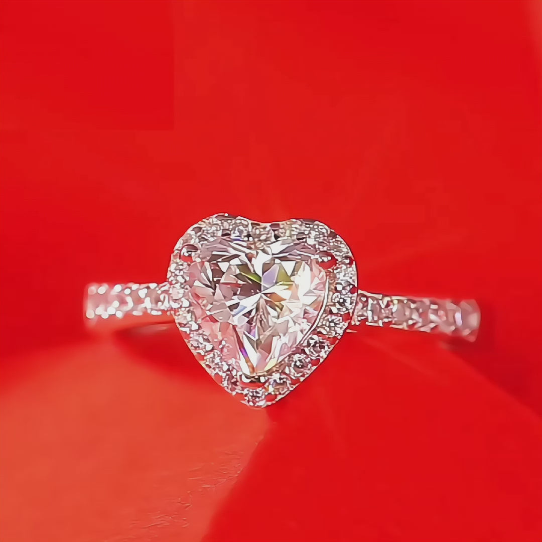 Experience unparalleled sparkle with our Skye Solitaire Moissanite Ring set with Heart Cut Moissanite solitaire. Crafted with a round brilliant cut stone, set in durable Sterling Silver with a Platinum Coating. Enjoy the beauty of a diamond without the high price.